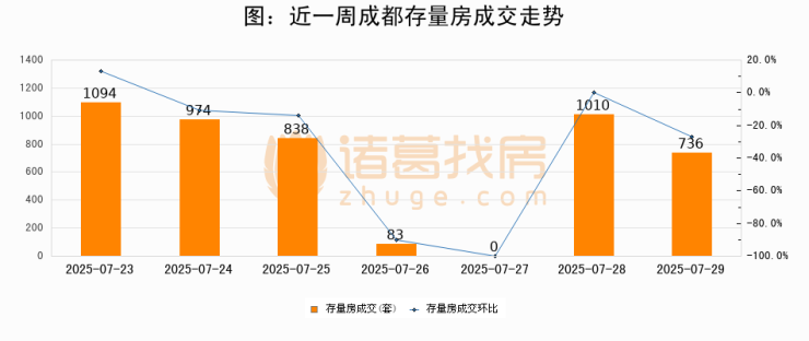 从存量房来看,2025年07月29日成都存量房单日成交736套,比昨日减少274套,环比下降27.1%。从近一周存量房成交来看,成都存量房日均成交套数为676套,07月29日单日成交736套,高于近一周平均水平8.9%。