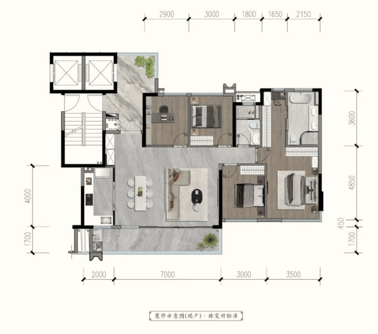 户型设计:130-191㎡纯板式四居,标配南向双阳台、私厅入户等创新设计,实现空间最大化利用。