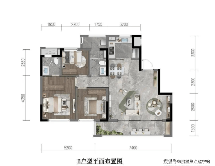 此户型具备独特的可变性,能够灵活变换为 3.5 房,堪称一个充满创意与想象力的全能户型。多出来的幻变空间,有效营造出疏阔交互的居住体验,生动演绎了家庭灵动式的生活美学,满足了家庭不同阶段的居住需求。