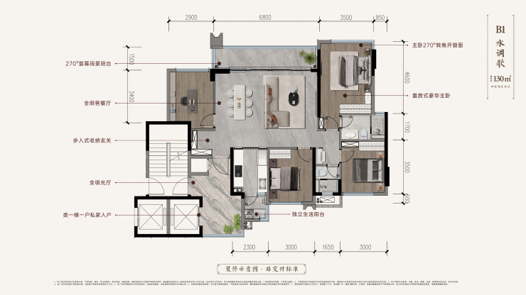 项目规划128-191㎡五大改善户型,本批次主推130㎡和143㎡两个明星户型。所有户型均采用光厅入户设计,面宽充裕,得房率高达91-94%。