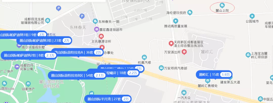 3公里范围内有万安镇的普济医院、万安镇卫生院、奥亚医院以及四川省省二医院,这是一家三甲综合医院,总占地170亩,床位约1500张。远一些的还规划有华西天府医院和万达国际医院等先进医疗机构。