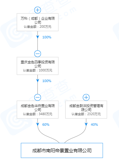 ▲万科天府新区低调拿地工商信息显示,万科(成都)企业有限公司的子公司成都金色华府置业有限公司为南阳帝景置业的较大股东,持股比例60%。2019年7月11日,南阳帝景置业发生股权变更,新增成都金色华府置业有限公司为股东。