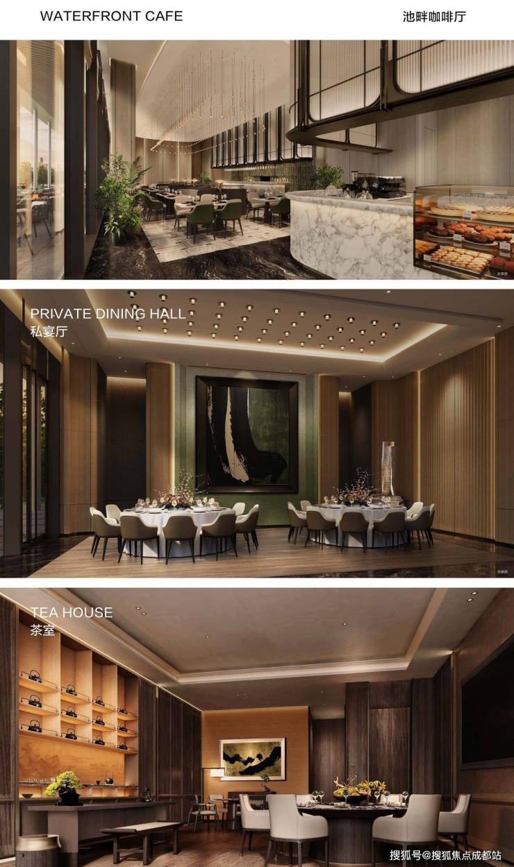 全球华人设计教父梁志天以水为主题的会所群落,以1500㎡中心水景贯穿庭院,蜿蜒串起三幢会所建筑,打造出繁华都市中极为稀缺的心灵栖息地与隐世桃源,满足业主餐饮社交、阅读时光、运动健康、疗愈放松、艺趣娱乐等多场景需求。