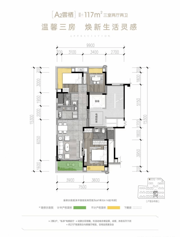 9、主城三环内19999元/㎡起精装四大件:中央空调、新风系统、地暖配齐、智能面板!