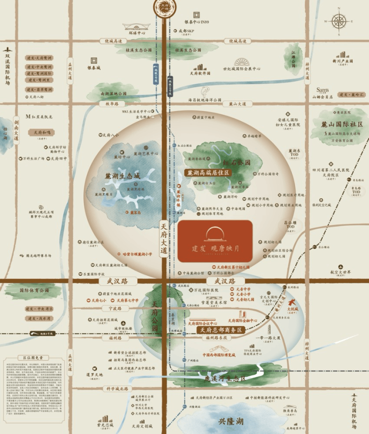 1、项目位于麓湖高端居住区,天府大道与武汉路十字轴芯,土地价值弥足臻贵