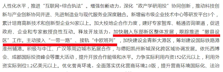 而在近几个月新津县相关会议以及文件中,多次有“新津开启公园城市建设、迈入地铁时代、即将撤县设区等多重重大历史机遇背景下”的表述。