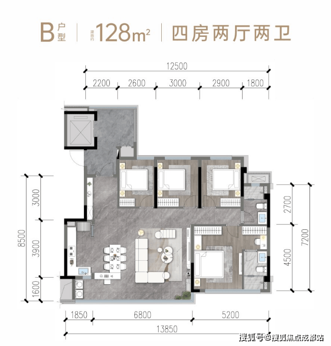 B1户型 128㎡四室两厅