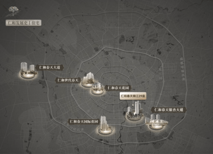 仁和住宅,成都长期主义豪宅运营商典范。2000年,仁和春天花园:浣花溪初代豪宅,老钱身份象征。2006年,仁和世代春天:交付近20年,仍在进行社区改造。 2008年,仁和春天大道:全国首例滩源社区。2014年,仁和春天国际花园:金融城品质与颜值标杆。2024年,仁和春天银杏大道:成都城东产品力王者。