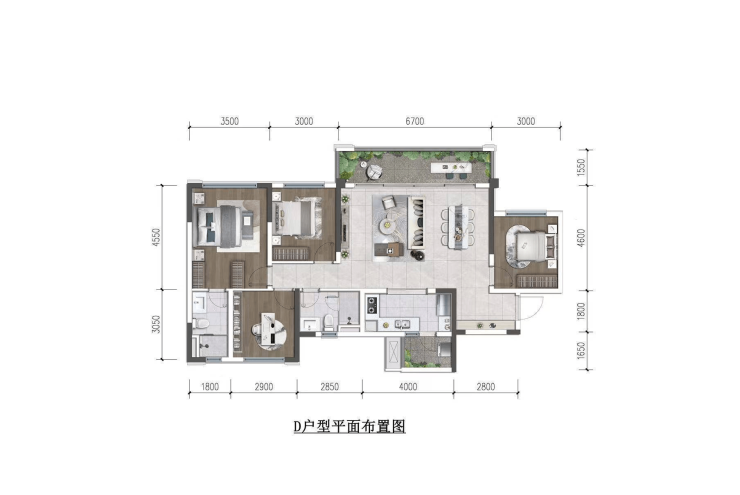 奢阔三房设计;动静合理分区;独立玄关;约6.8m极致观景阳台