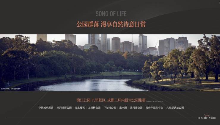 项目拥有与府河一墙之隔,0距离靠近府河河景资源,且项目以北的九里堤遗址”为文化之源,沿着锦江从三环外延伸至二环,将打造覆盖面积超2000亩的超大型城市公园集群——锦江公园(包括华侨城欢乐谷、府河摄影公园、临水雅苑、上新桥公园、下新桥公园、亲水园、沙河源公园、青少年活动中心、九里堤遗址公园等九大锦江公园节点公园)。
