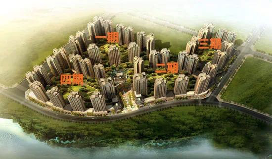 项目一二三四期呈围合式分布,其中二、四期最北楼栋,紧邻江安河,可以远眺南湖。目前一期已经交付,二期正在进行室内装修,三期楼栋主体已经封顶,四期开发最晚,楼栋主体还在修建中。