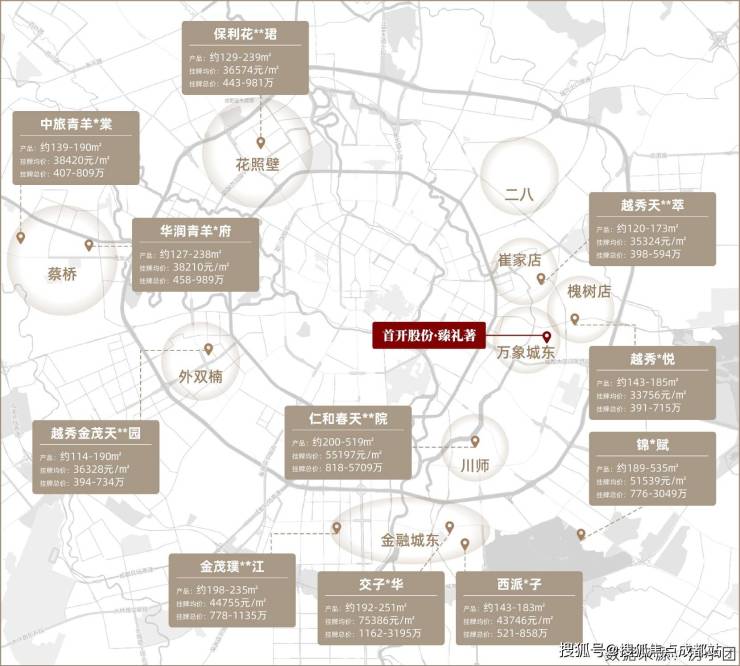 东二环战略地位:作为主城发展起源地与高端居住聚集地,东二环已形成媲美金融城的潮流文化中心。项目占据万象城东侧,毗邻攀成钢、杉板桥板块,构成“黄金三角”高端居住区。
