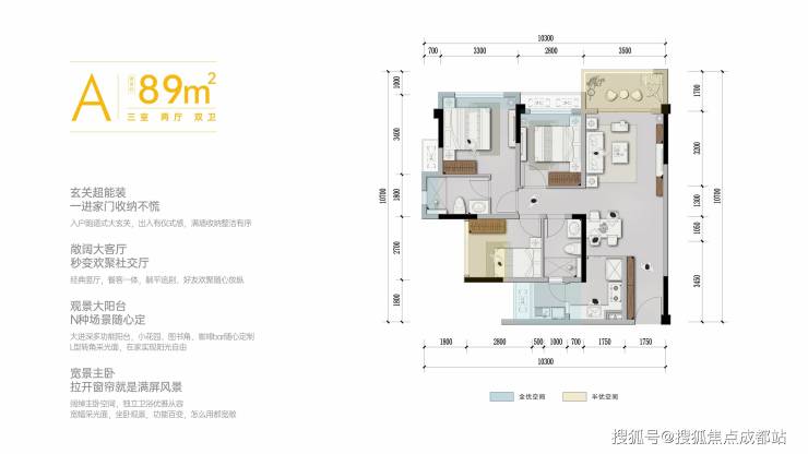 89㎡:三室两厅双卫