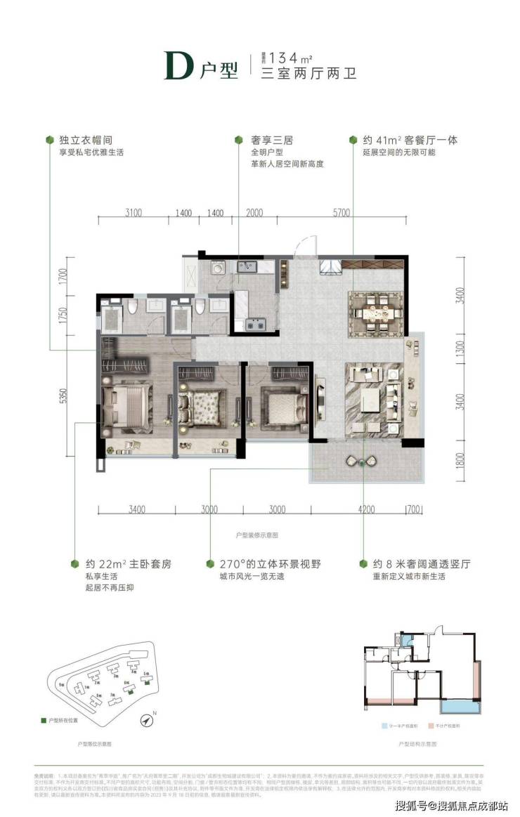 空间尺度:层高3-3.15米,公摊21%