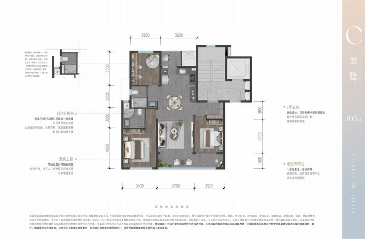 LDKG格局,阳台/横厅/厨房/餐厅无缝连接