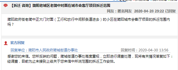 小编在官方网站上整理了部分涉及简阳13个镇(街道)的拆迁问题,针对这些问题,官方已经回复,快点来看吧!