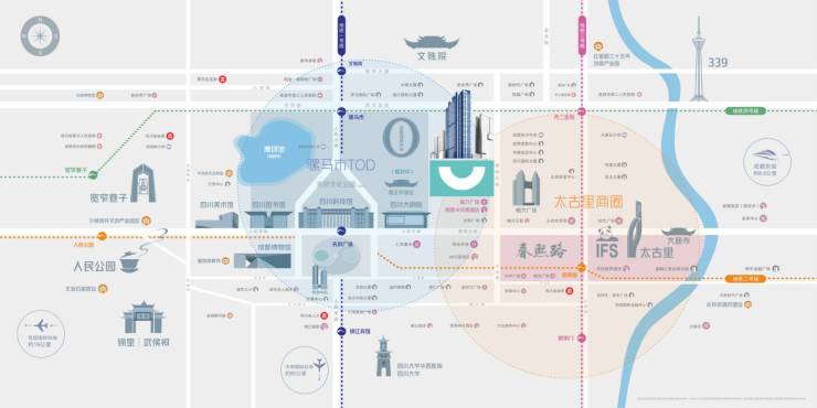 市中心区位:成都一环内正中心天府广场旁,处于太古里和骡马市两大黄金商圈的交汇处