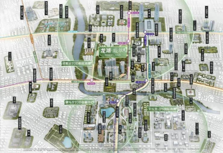 时隔近7年,龙湖再度回到一环芯,带来了龙湖·观萃。在成都链接世界的百亿商圈内,龙湖·观萃在享有主城一环芯硬核的城市地段上,生来就已尽揽全城优质资源。一环也在城市的嬗变中不断进击。骡马市TOD一体化城市设计,就展现了强大的中芯之势。根据规划,骡马市TOD将打造为成都全新城市会客厅,包含约300米的摩天大楼、约200米的塔楼等,将引入以高端商务、现代金融、数宇经济、高新技术等业态为主的特色产业集群,未来的骡马市TOD将展现出城市形象和中芯能级的全新蝶变。