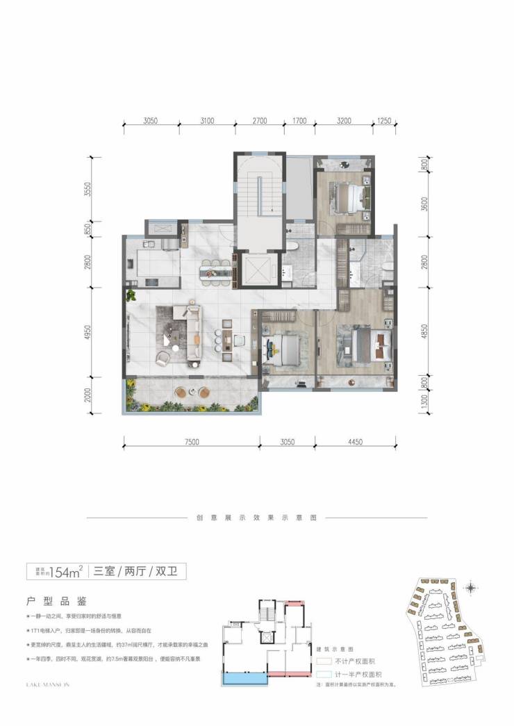 亮点1、一梯一户,私享独立入户空间2、15平超大观景阳台3、户型动静分离,尊享约33平豪华主卧套房