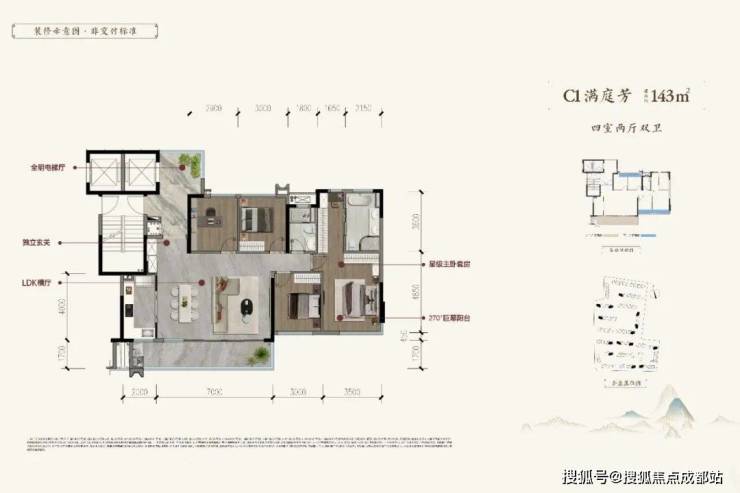 在售面积:130-191㎡,均为四房户型。
