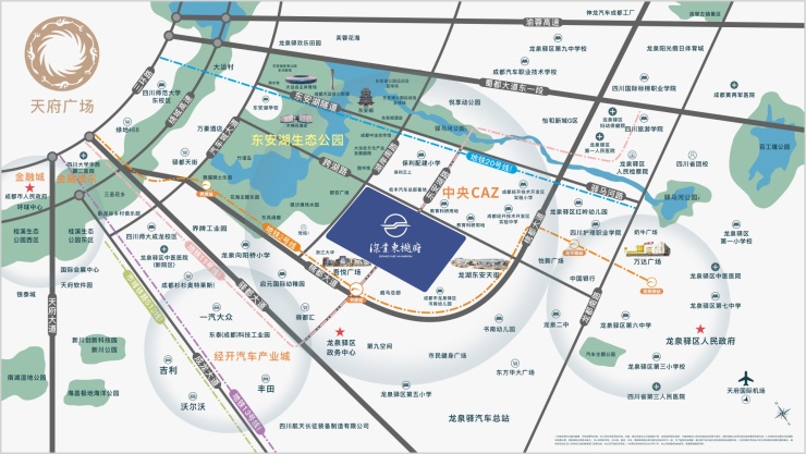 交通配套:蜀都大道/驿都大道/桃都大道等四横三纵主干道、地铁2号线(已运营)书房站、22号线(规划中)、25号线(规划中)、11号线(规划中)等四大轨道交通、K6/K7等两条快速公交