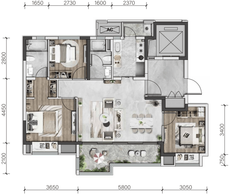 创新研发全生命周期户型体系,采用无廊柱设计,实现空间自由组合,满足家庭成长需求。