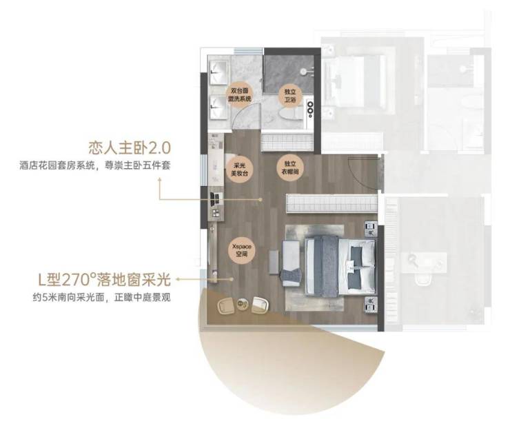 项目充分利用新规再做突破,真正地实现了同等面积下家庭空间场景革新,别墅平层化的迭代创造。建面约143㎡央景花园平墅,正瞰中庭景观,成就C位观景正席,当之无愧的央景楼座新款爆品。