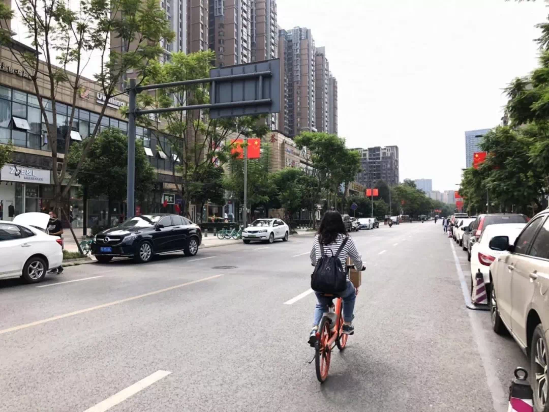 普通道路的绿化,是花草树木沿道路两侧呈“一”字形排开,但华润路两侧的绿化是这样滴~郁郁葱葱,望不到头,类似长廊式公园。