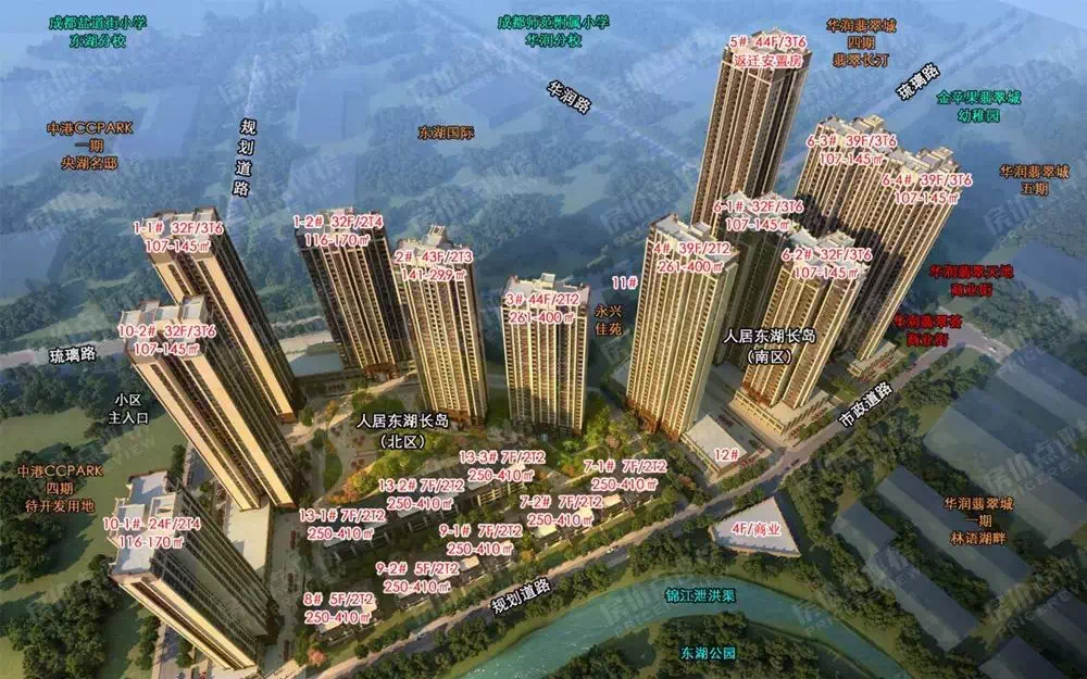 01区位:主城区的一张生态王炸牌人居东湖长岛位于锦江区琉璃路396号,二环路东五侧外段,紧邻东湖公园,属于东门最核心的居住板块——东湖板块。