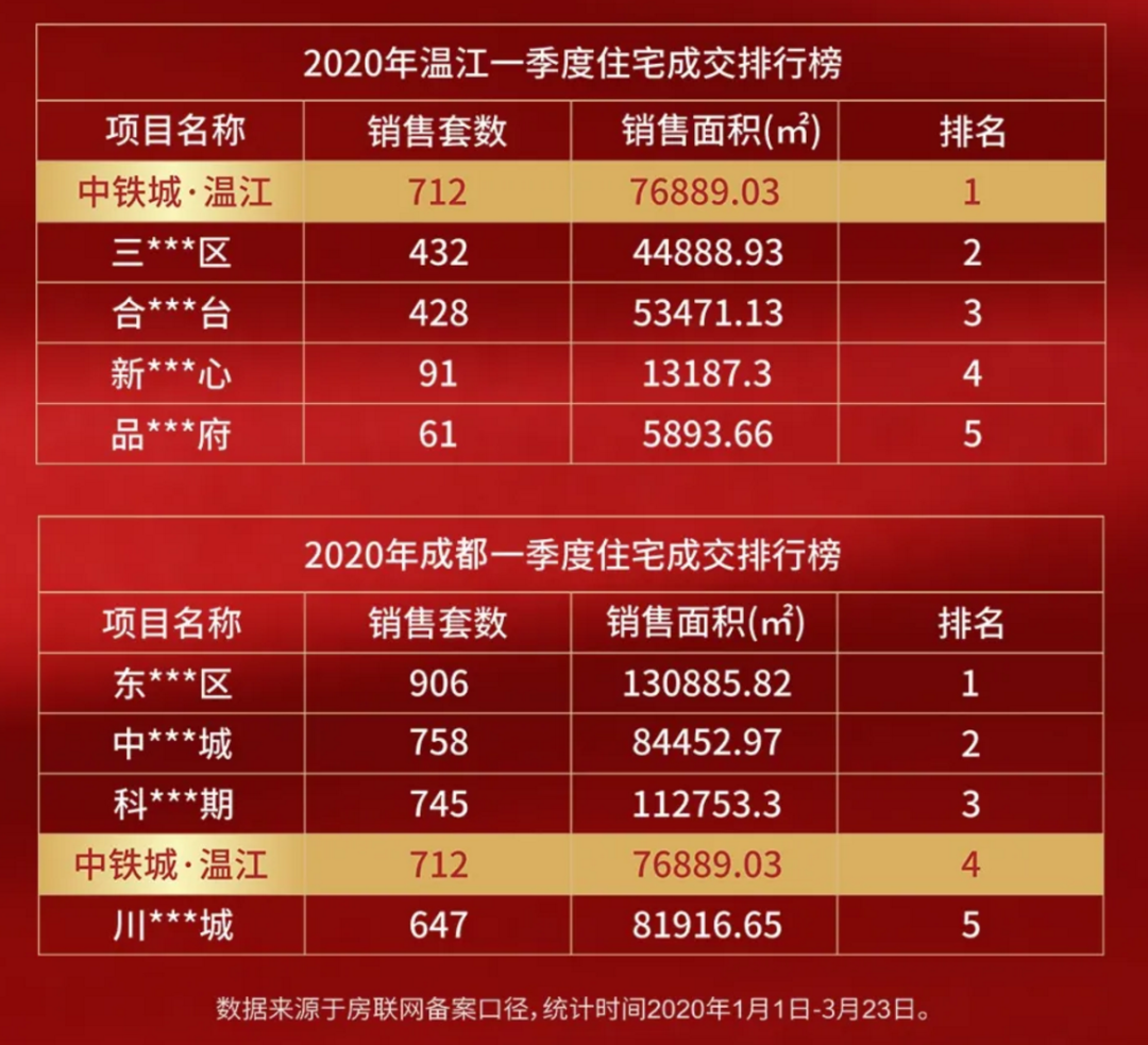 去年11月,中铁城·温江【鉴湖栖郡】组团首开入市690套房源,报名人数1385人,开盘去化率高达100%。19年12月31日再次加推,截至今年3月共卖出712套新房,销售面积达76889.03㎡。