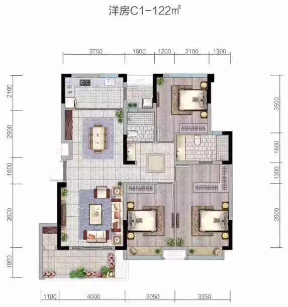 全卧室飘窗设计,采光与通风效果优质;户型方正实用,生活动线合理。