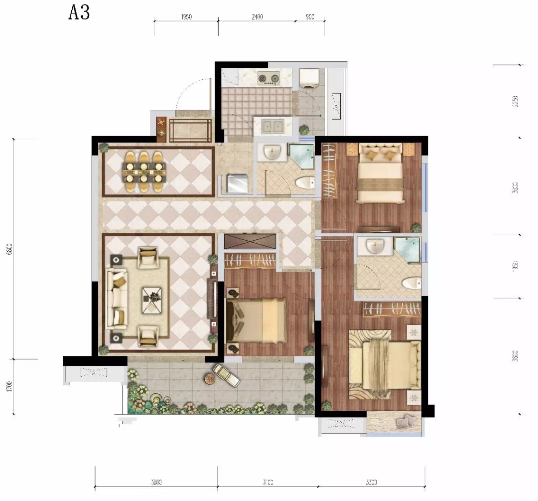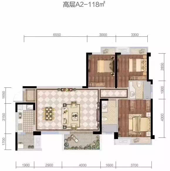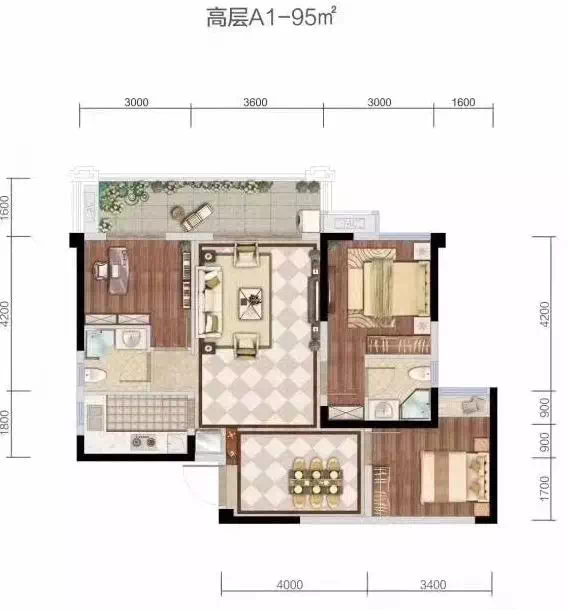 位于高层端头位置,板式结构,南北通透。6.9米长的横厅让公共空间显得奢阔大气,4x1.7米的景观大露台可种花种树养鱼观景。