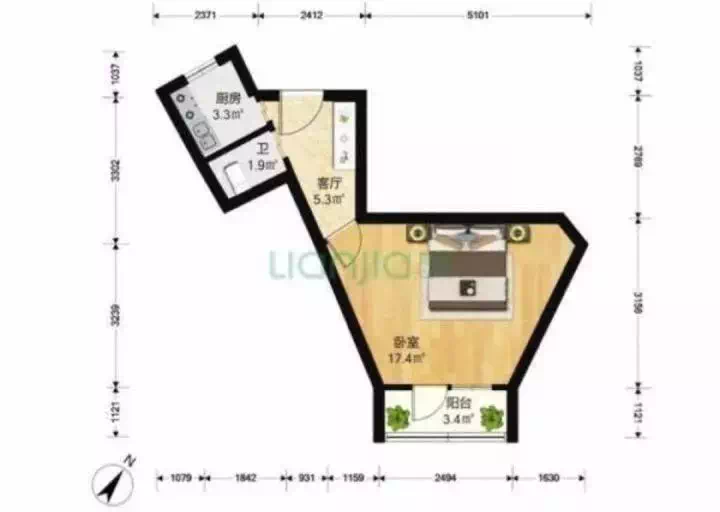 光看上面的户型,我都觉得这是一个有味道的地方,厨房和厕所连着,有那味了!