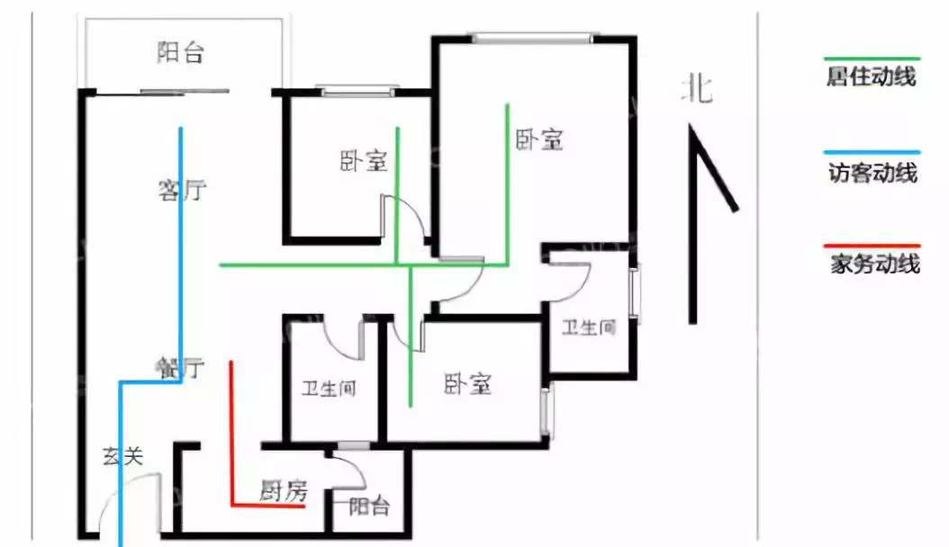 主要有三条:居住动线、家务动线、访客动线。