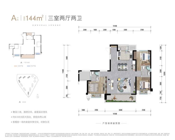 层高:3.15米(277㎡户型3.3米)