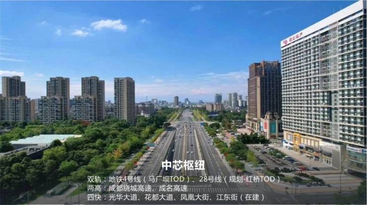 立体交通:双地铁(4号线马厂坝站/规划28号线红桥站)+双高速(绕城/成名高速)+四主干道(光华大道/花都大道等)
