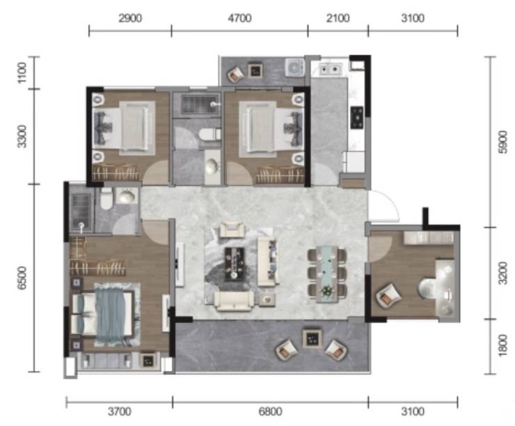 紧邻双流万达广场、城南优品道、时代奥特莱斯海滨城购物中心等繁华商业,悦启高配生活所向