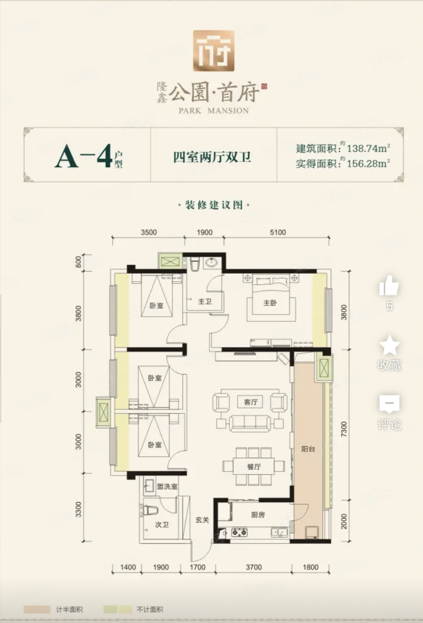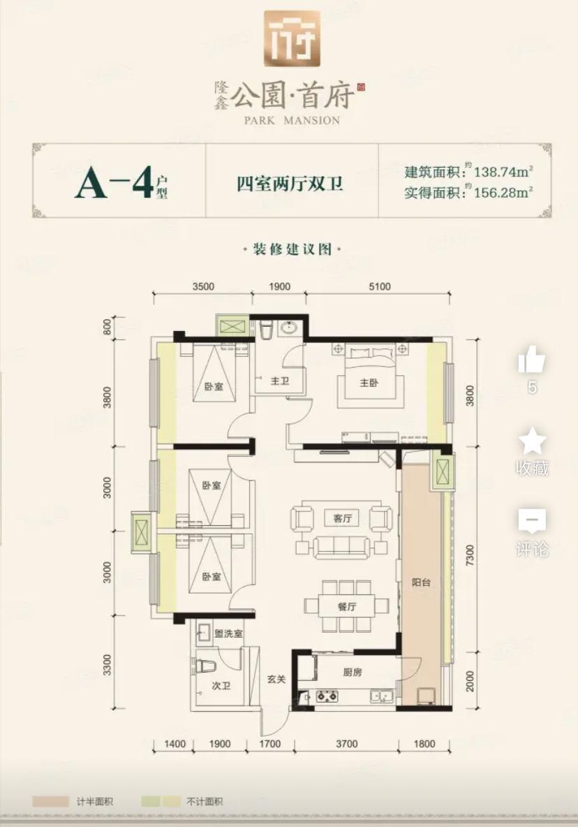 这个楼盘品质较高,1.19的容积率,纯住宅社区。小区32%的绿化率,洋房石材外立面,户型做的非常宽适,即便是低楼层也采光极好,居住舒适性很高。领地天府兰台143平户型样板间项目单价11816元起,一套143平的洋房总价170万左右,作为改善型住宅价格尚可。想要寻求岛居环境可以看看团结岛,恒大林溪郡、花样年看今朝,价格较低,适合投资,花屿岛品质和价格比较高,可以改善。