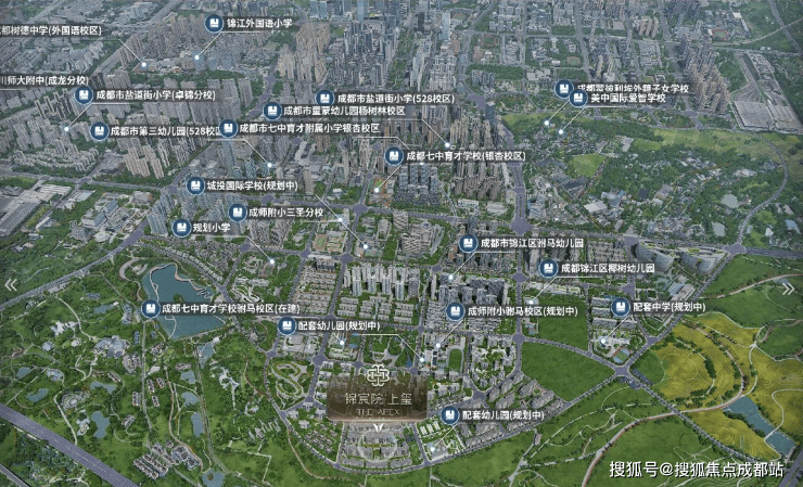 2所七中育才系、2所成师附小系;4所国际学校、7所幼儿园等近20所学校;许燎源博物馆、蓝顶、何多苓等艺术IP;群落交织顶级人文品格与底蕴,启迪一座城市的未来。