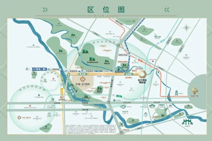自2010年金沙遗址入选首批国家考古遗址公园,该区域便跃升为成都楼市价值高地。巅峰时期以"金沙"命名的项目超过20个,与"南富"桐梓林形成鼎立之势。经过二十余年发展,金沙板块已形成完善的交通、商业、教育、生态及医疗配套体系,这与中旅"馥棠"系"非核心不立项目"的选址理念高度契合。