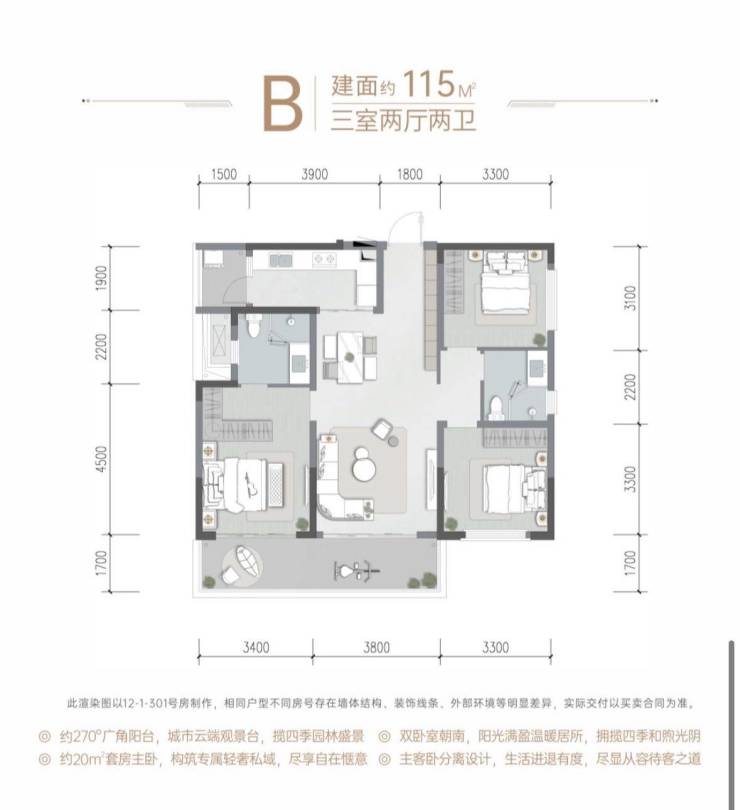 115㎡三房两卫:总价约181-189万元