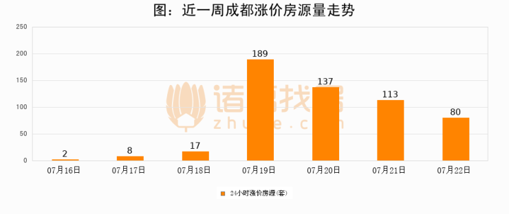 根据诸葛找房数据显示,成都24小时涨价房源量为80套,较07月21日减少33套,环比下降29.2%。与此同时,涨价房源占比小幅回落,对于购房者来说是一个入市窗口期,购房者可抓住时机入市。