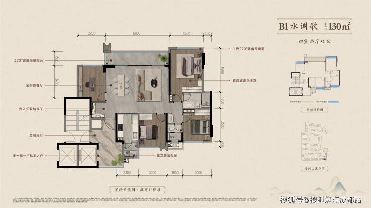 128-192㎡全系四居户型,采用创新空间布局,兼顾功能性与舒适度:• 双厅一体化设计延伸视觉尺度• 全明卫浴系统保障健康生活• 270°观景阳台衔接室内外空间