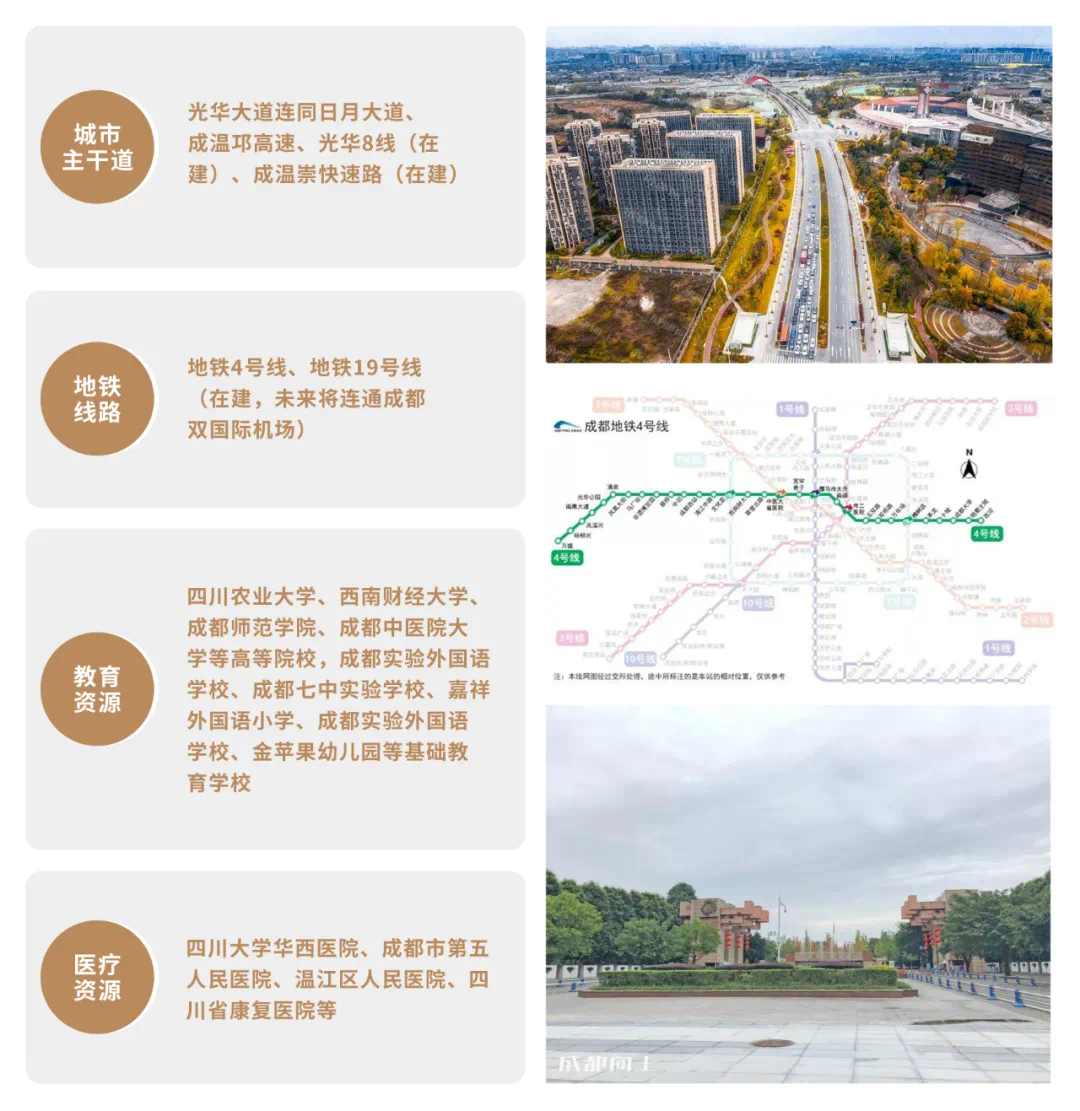与项目一街之隔的,便是西贵全新的城市封面「温江文体中心」;其南侧,是连通成都的两大国际机场的地铁19号线;其北侧,是温江 “ 心脏 ” 的政务中心以及成都第二黄金发展轴 ……