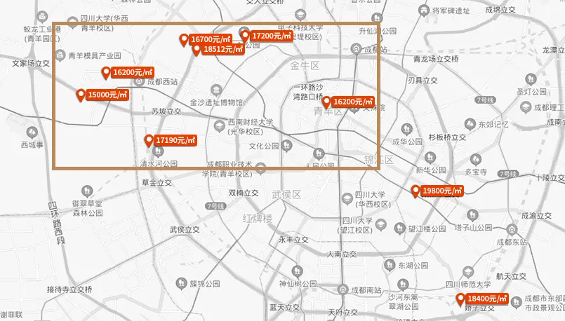 固然,去年少有楼面地价达19800元/㎡的土地属于锦江区,全城楼面地价不低于15000元/㎡的土地仅9宗,其中7宗都位于城西。