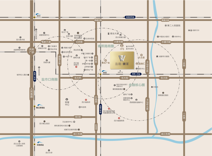 盈嘉赢家雄踞春熙路商圈核心腹地,与IFS、太古里等顶级商业体形成黄金三角。区域内汇聚500万方商业体量、200余家金融机构及80%外资企业总部,日均客流超50万人次,堪称成都商业价值制高点。