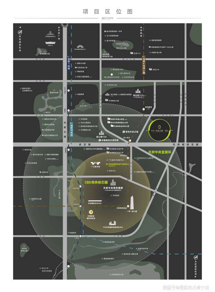 保利·璟园位于天府新区通州路与武汉路交汇的第二象限内,属于天府前湾板块。天府前湾的价值在于西接麓湖、南接中央商务区,现状虽然一般般,但未来几年可是天府新区的供应大户。作为天府新区的全新板块,天府前湾有“白纸作画”的先天优势,因此在规划和设计之初就被定位为“人城境业高度和谐统一的公园城市示范片区”。人城境业,就是从“以人为本”的需求点出发,营造宜居为先导的城市空间,吸引人才和产业入驻。保利·璟园选址于天府前湾最靠近天府总部商务区的位置,因此具有更高的地段价值,又能就近享受到更完善的城市级配套。