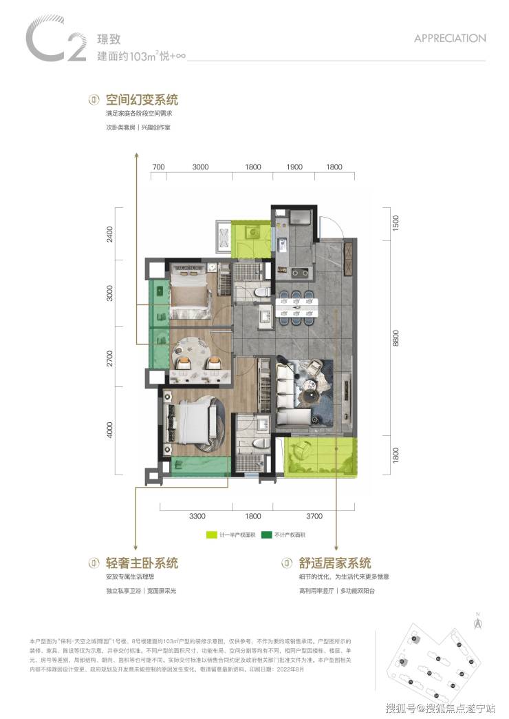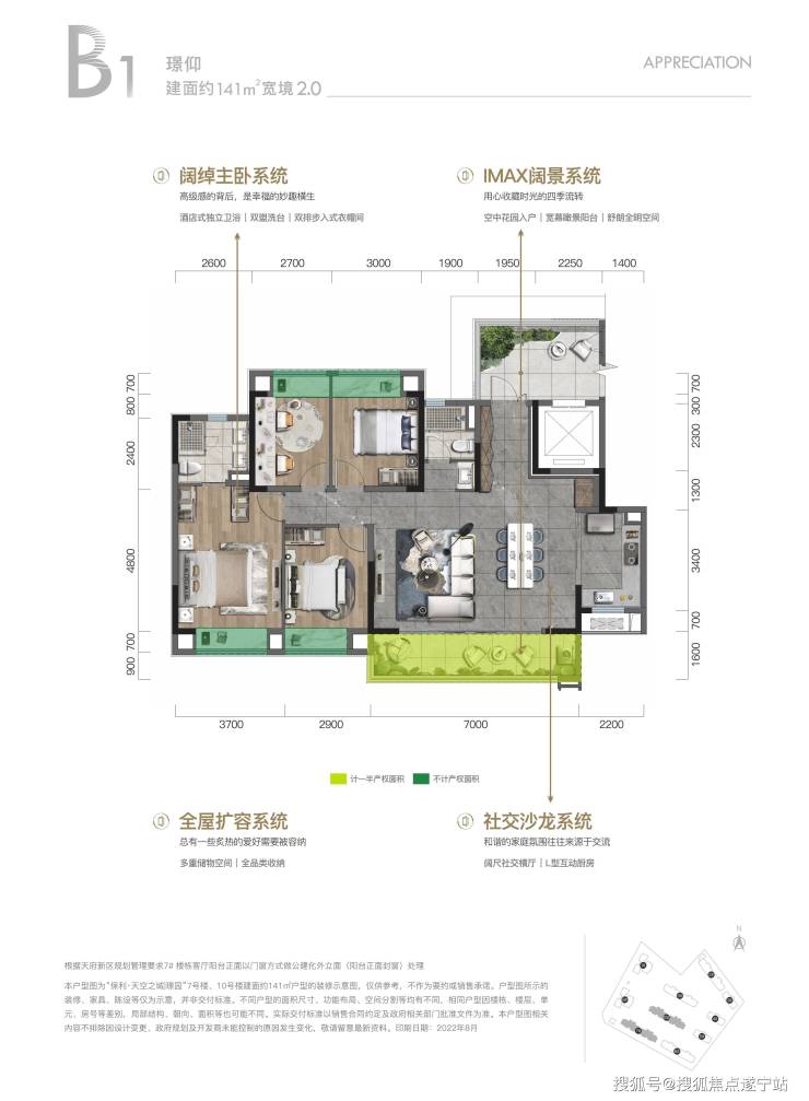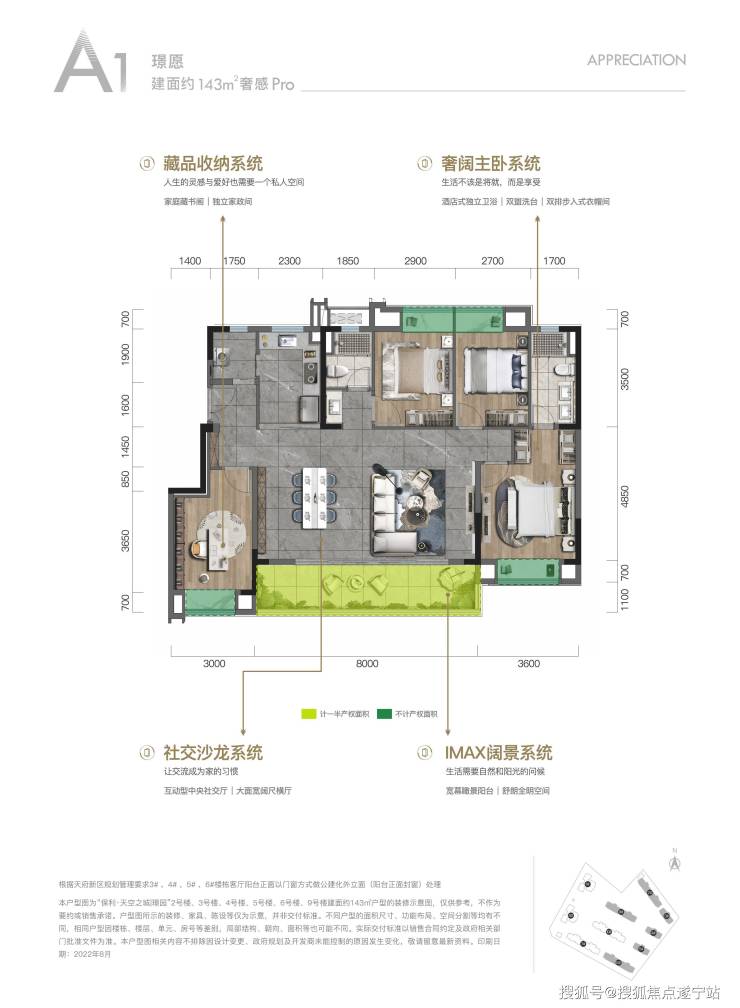 保利璟园,占地约41亩,地块不大,但仅2.0的容积率和纯住宅的土地。共规划了8栋T2板楼和2栋T4高层,因为项目地块的东南侧为规划的“天府绿湾”,因此小区建筑整体也呈西北高东南低的走势。在售建面约141㎡、143㎡户型,少量顶楼 128㎡户型在售,均价约22000元/㎡。