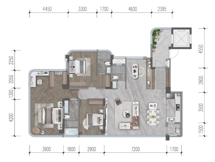 7层稀缺洋房,3.3米层高;270°转角客厅,11㎡入户花园;35㎡主卧套房配置独立衣帽间;7.2米横厅设计,空间利用率达108%。