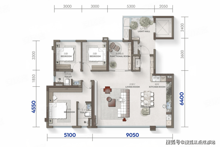1、采用2梯2户纯板式设计,129-199㎡全系四房户型,满足不同家庭阶段的居住需求
